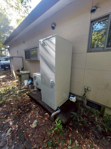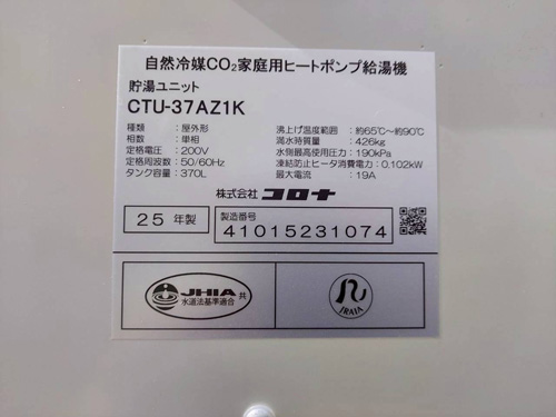 花巻市星が丘 パナソニックヒートポンプ給湯機ヒートポンプユニット(屋外用)HE-PL45D→コロナ自然冷媒CO2家庭用ヒートポンプ給湯機ヒートポンプユニットCHP-DZ451K、貯湯ユニットCTU-37AZ1K エコキュート交換工事
